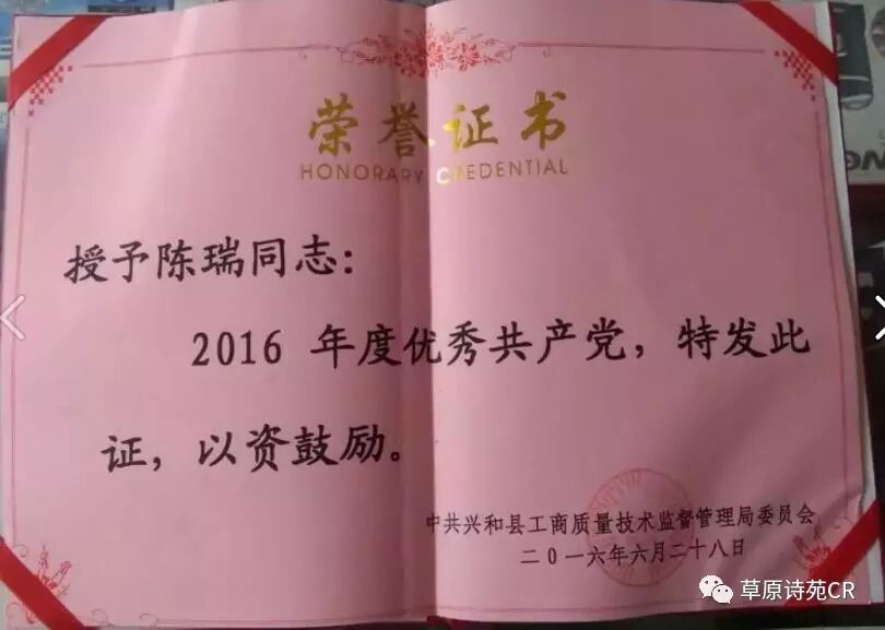 陈瑞,笔名寒风,男,1968年出生,内蒙古兴和县个体工商户,优秀共产党员,自1992年经商以来,曾多次被有关部门授予十星级文明个体户,无假冒门店,纳税先进户,共产党员先锋店等。历经和目睹了改革开放以来,我们伟大祖国取得的翻天覆地的变化。酷爱诗词,闲暇之余,怀着一颗感恩的心常写一些歌颂祖国,歌颂家乡美好新生活的诗词。现任内蒙古诗书画研究会兴和分会会员,乌兰察布市作家协会会员,内蒙古诗词学会会员,中华诗词学会会员。
