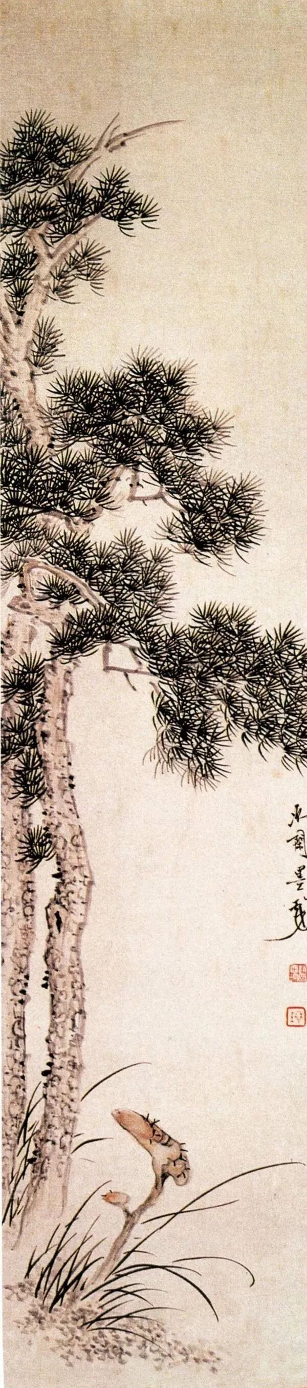 似与不似之间,还可以表现为“语带双关”,清初画家梅翀《松芝图》中的松树,既像松树又像山,但又都不完全像。如果看作松树,则松枝是一边倒的;如果看作一座山,“松枝”则是山的脉络纹理,画家是用视觉的“语带双关”的形式,来表达寿比南山不老松的祝寿美意。这是一个特例,此类作品不太多,但对我们很有启发意义。