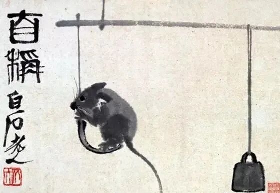 中国画还有一个特点是奥理冥造——大胆的想象与幻化。奥理冥造为北宋沈括所言,就是说要大胆的想象与幻化。齐白石《自秤图》中,一只小老鼠跳到一杆秤的秤钩上,似乎想称称自己的重量,奇怪的是,上面的秤绳不知由谁来提,秤砣不知由谁挪动使之平衡。画中的图像其实是齐白石的想象,通过想象来调侃小老鼠:你这只小老鼠偷油吃,偷粮食吃,不要自以为有什么了不起的,你到底有多大分量,不妨自己来称一称。所画内容在现实中并不存在。再说一个大胆想象幻化的例子。
