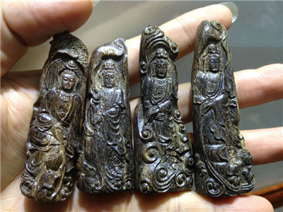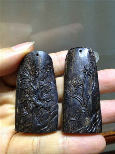另外:这些小块的素件,大家可以做为标本之用,沉香的横截面,纵面,油脂格局和油路走向,都十分清楚地分布在上面了。诸友亦可拿个刀具,切一小丝,熏熏,焚焚,辨认一下味道,以后碰到其它的沉香材质就不会偏离太多了,因为,沉香的气蕴,大都大同小异,区别的只是:油脂的多寡,气味的浓淡,香型的差异而已。