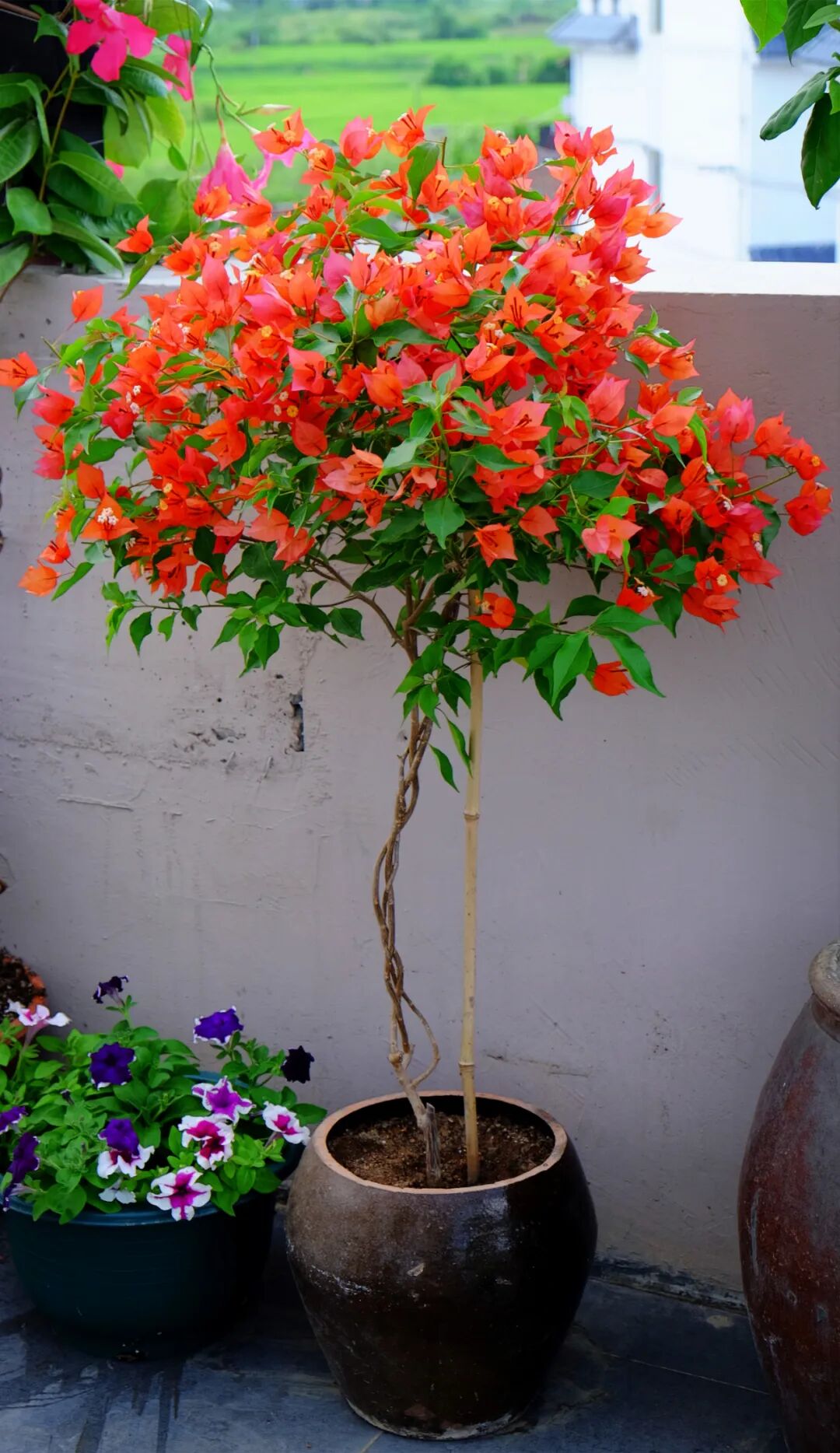 给三角梅多晒太阳、控水1个月,之后补充2-3次花多多2号,可以让三角梅开出满树花,种在坛子里格外美!