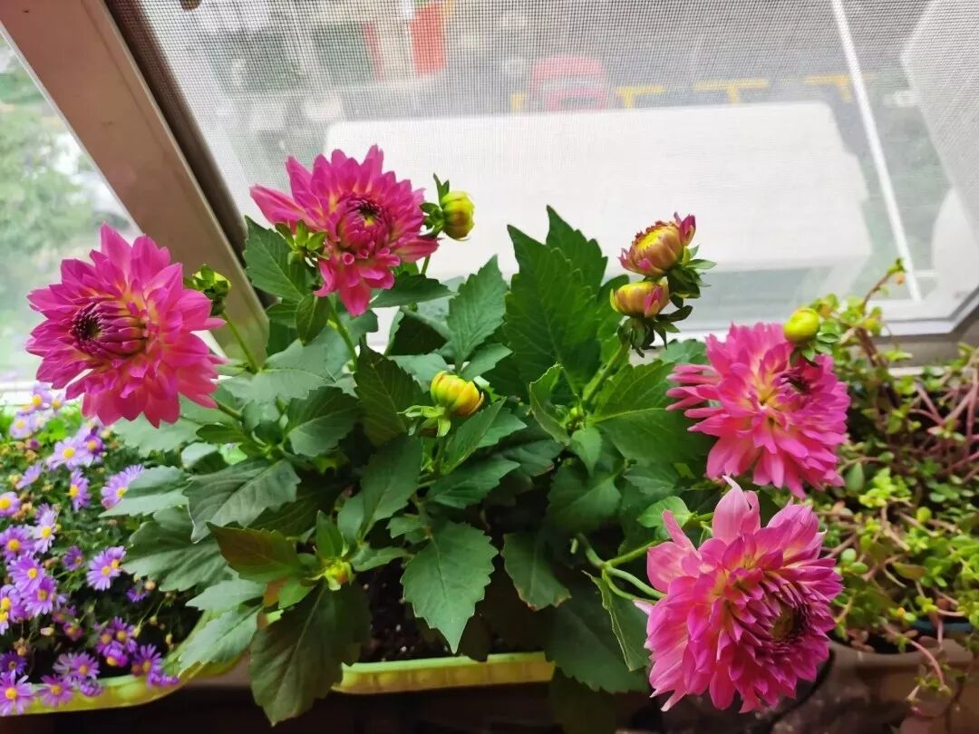 冬天带花苞的小丽花都是大棚培育出来的,对空气湿度的要求特别高,如果你家太干燥,那可能没两天叶片就枯了,所以花友们在收到货后,一定要记得每天在叶片周围喷雾,花盆周围摆盆水。等花开得差不多了就剪掉残花,施一点薄薄的花多多2号水溶肥,春天暖和的时候,有院子的花友可以把植株移栽到院子里,地栽能养球,有利于复花。