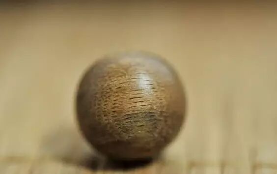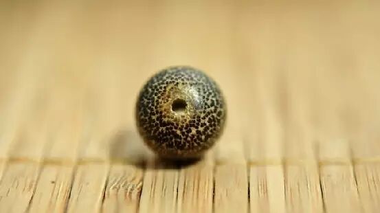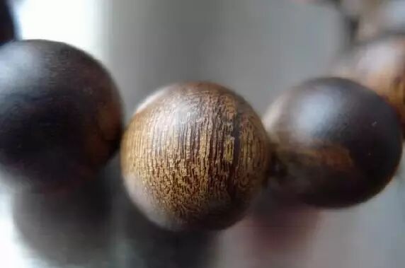 这类沉香珠子的“油脂线”是毫无规律的了,形成了类似“虎斑”的花纹。 但是这是后期画上去的,珠子的材质可以是无油的沉香类,可以是其他的木质类。分辨的方法是,在没有形成“黑线”的区域,是完全不存在油脂线纹路的。真沉香所形成的油脂线纹路细如发丝,即便是没有油脂形成的地方,也能看到没有黑色油脂填充的纹理。 在表面形成“虎斑”也是有“渐变”效果的。如果用毛笔在宣纸上画上一道,线的周围是有浸染效果的。而非像这样类似圆珠笔画出的线,根根分明。