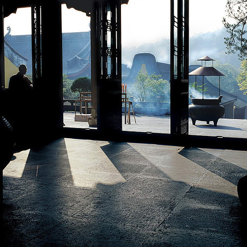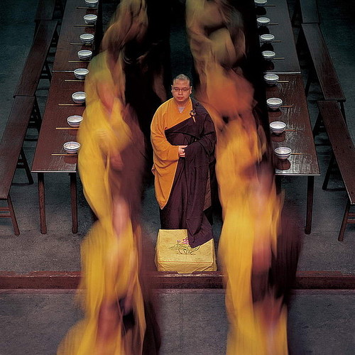 他一头扎进佛门,潜心创作,悉心感悟,历时九载,深入灵隐寺、天台山等佛教寺院,与方丈同吃住,与法师共修禅,更与众多佛门弟子朝夕相处,同时通过镜头中的光影变幻,超度了一般人难以逾越的神秘体验,完成了一次从身体到心灵的奇妙旅行。孤灯黄卷,晨钟暮鼓,荒地佛影,恍若隔世。