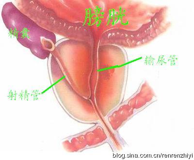 在膀胱和精囊的下方,就是前列腺,它的大小,就像一个较大的板栗。射精管和输尿管在其中合二为一,成为尿道,沿着阴茎通向外面。这就应了中医里的一个说法:肾有两窍,一个精窍,一个溺窍。精窍就相当于射精管,溺窍就相当于输尿管。