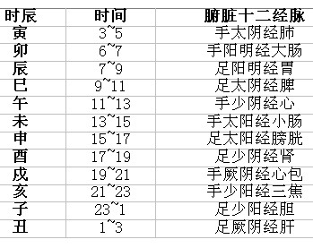 十二經絡對應十二時辰(時間)