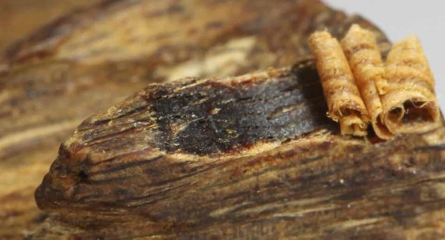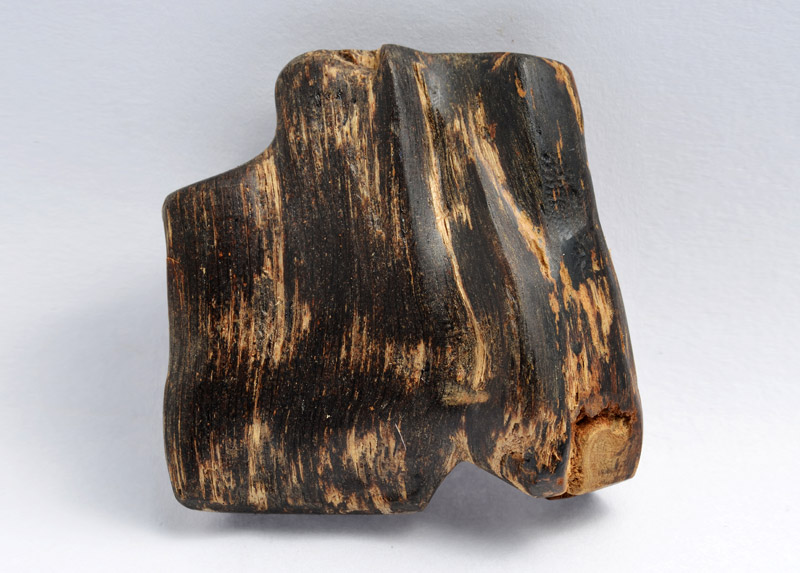 而熟结是指沉香树木结香已死,未倒(就是未被土掩埋或者被沼泽淹没),依然经历风吹雨淋,那么这种就叫做“倒架”,倒架前如果是被虫蚀而致结香的话,那么就叫做“虫漏”了。倒地后埋在土里,日久风化,叫“土沉”,倒在沼泽,叫“水沉”。 因此,4个名词:倒架,虫漏,土沉,水沉——都是野生的料子,也就是熟结。 这是形成条件的“质”。