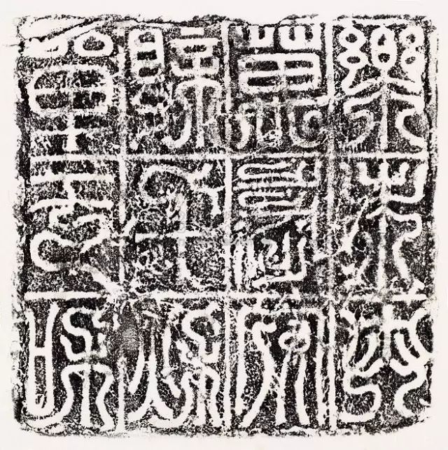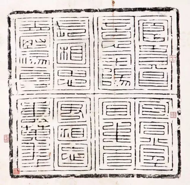 阳文缪篆,在正方的砖面中分成四格,横竖线条以等距离排列,篆法方整,各字因势又长短不一,空间协调而独具匠心,被“甲骨文之父”王懿荣在四川新繁发现,广为世人所知,当为汉代出土文字砖之王者。