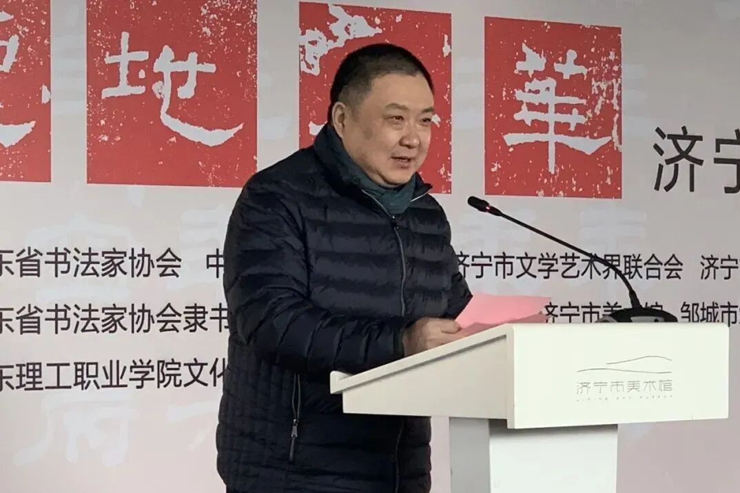 山东省书法家协会副主席、济宁市书法家协会主席谢长伟介绍展览筹备情况