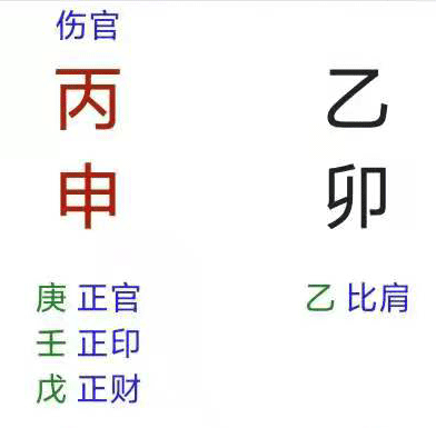 比如下面这个命例,为了保护福主的隐私,我只写月、日两柱来说明问题。个人非常喜欢出生在申月的乙木日主。原因很简单,他这个提纲里面包含着财、官、印,正是我们这个世俗社会中人们奔忙的目标。而且申金还是乙木的天乙贵人,多半都是好命。