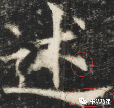 这个“气”字,相信大家首先能够找出他的主笔是红色的勾,而其他笔画都是次笔,黄色部分的横画都是写得很细,很短,节奏单一,而且写得很斜。为什么要写斜呢?这就是楷书中常用手段“先造险再破险”先制造不平衡,再去打破平衡。这几个横画整体都呈现往右上飞动的趋势,很不平衡,而这个勾一写上去就打破了平衡,这个字就很稳定,但又显得不呆板。与印刷体的“气”字,一对比,那个字更美,一眼看出。