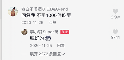 五哥又像往常一样,在视频下面留言:回复我,不买1000件吃屎!