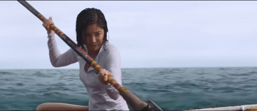 影片一开始,赵奕欢饰演的沈欣就在大海里游啊游。