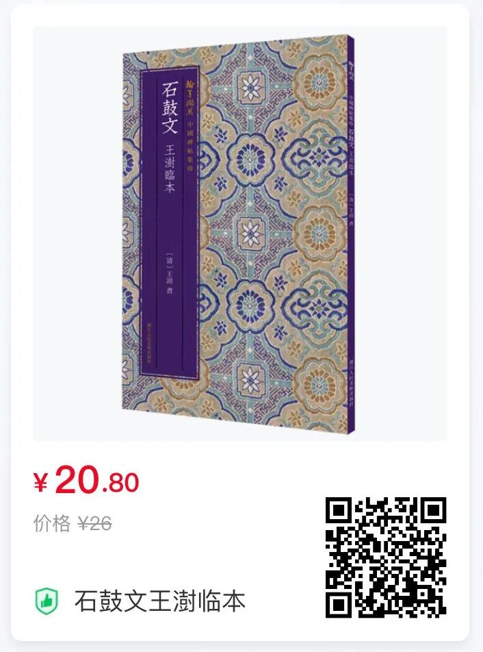本次出版的《石鼓文王澍临本》,高清还原,便于读者临写、赏析,且在每页侧边以繁体注释文,便于通读观照。所用释文以明代收藏家安国所藏“后劲本”为蓝本,并以王福厂先生所书小篆石鼓文对照参考。对于篆书爱好者、临写者,喜爱和研究石鼓文的读者均有极高的价值。