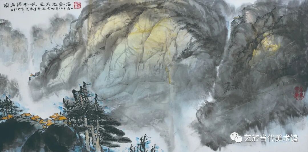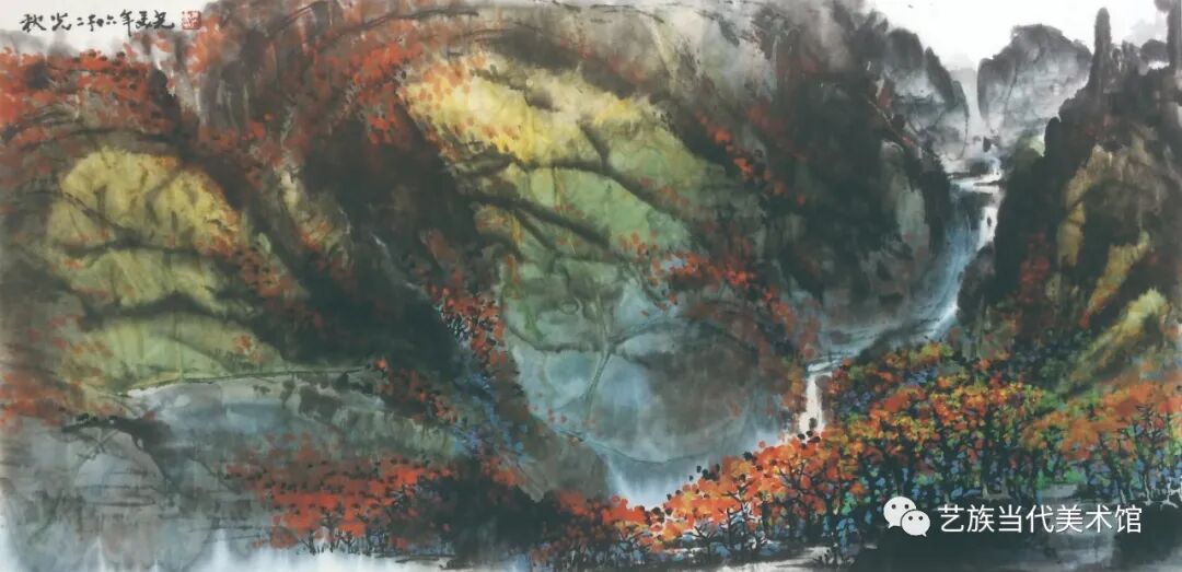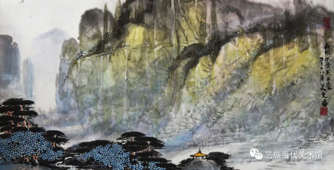黄美尧老师的这一创新,是开天辟地之创新,形成了属于自己的大墨大彩山水画,开创了黄氏山水画的一派新景象,作为张大千的后人,黄美尧老师他实现了超越。也因而推动中国山水画进入了一个新时代。