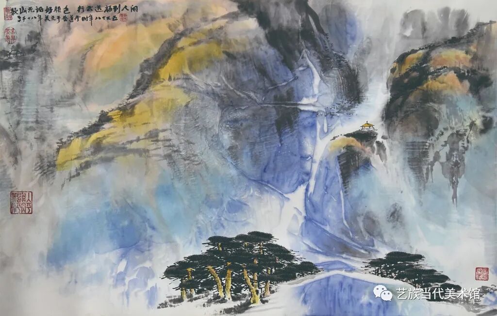 而黄美尧老师正是张大千泼墨泼彩的后学者,是当代山水画的正统传人。