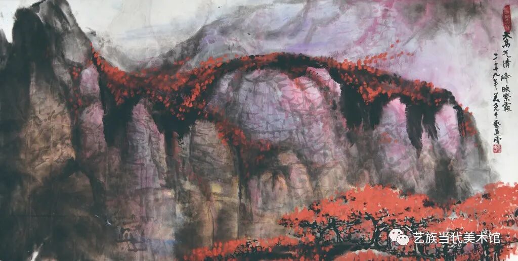 名称:《天高气清峰映紫霞》 尺寸:135cm*69cm