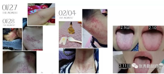 稍微懂点中医舌像的朋友都能看出,刮痧后寒湿之邪明显减轻。就是这样的自救治疗,在没有服药的情况下,让症状好转,体温恢复正常,不得不感叹刮痧的神奇。几次的症状发作都被她自己刮痧很快缓解了。她每天都认真做了刮痧治疗及刮痧前后舌像记录。直到现在,她仍然在坚持刮痧调理,舌像上清楚地显示出了治疗的效果。