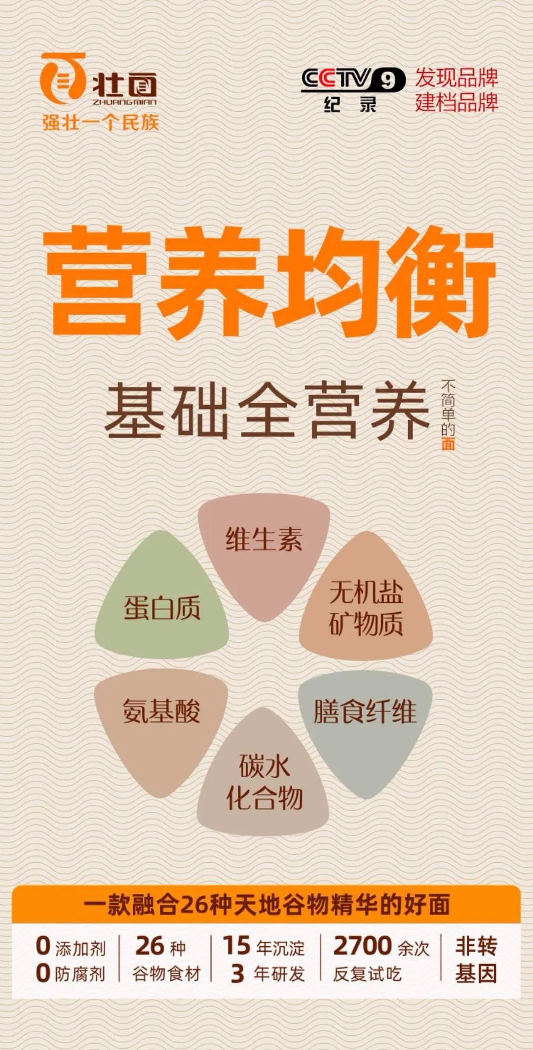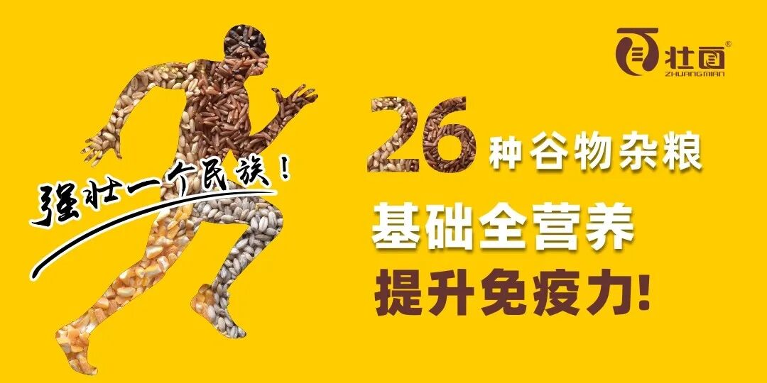 壮面中所含的26种五谷杂粮,配比科学均衡,不仅营养充足均衡,更有增强体质的作用,长期食用壮面,可以让人更加健康!