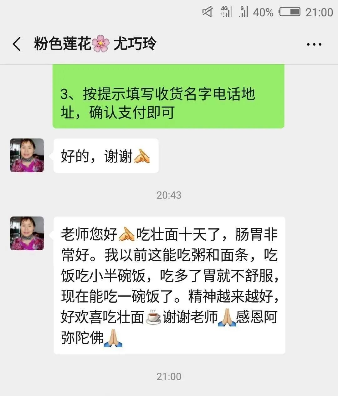 壮面没有做任何宣传,全靠口碑。客户在感受到壮面好处后,都是几箱,10箱,20箱的购买!他们不但要自己健康,而且还要家人和朋友都健康!