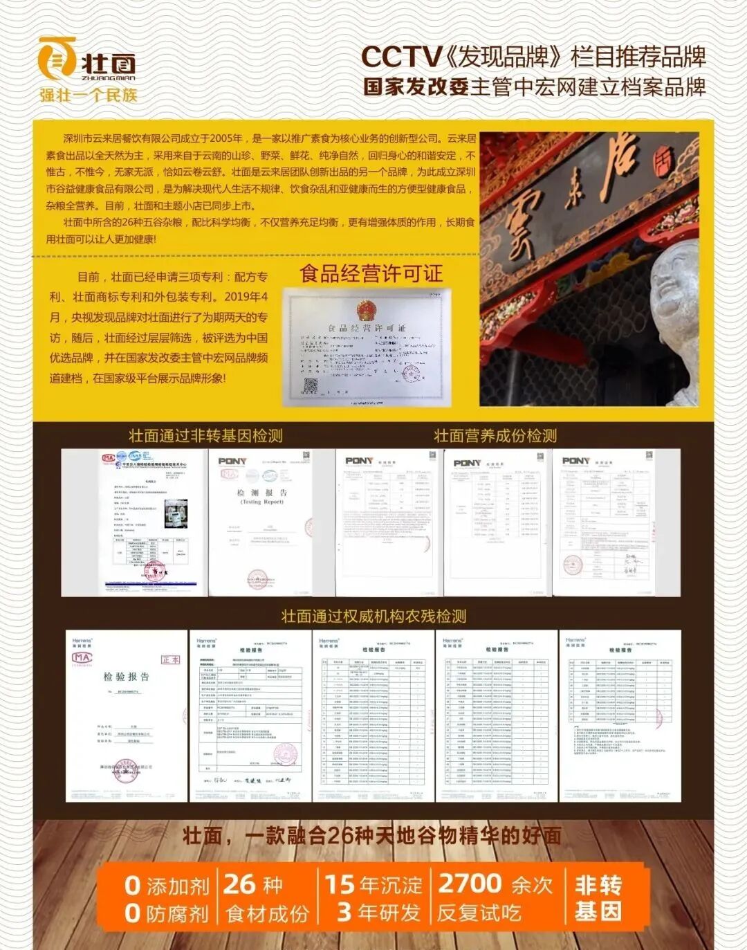 壮面在2018年8月份生产出来后,前期在云来居素食馆四个门店试销,受到消费者热烈追捧,10天左右卖一吨。
