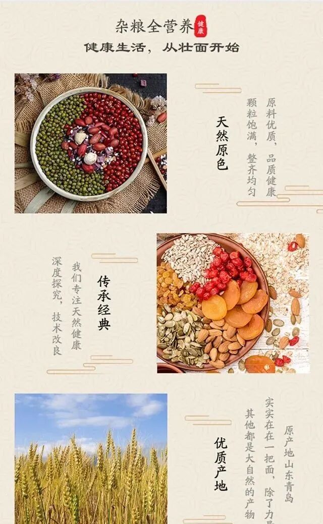 壮面的整个生产过程,不加任何防腐剂和添加剂,保持了杂粮天然的精华。而豆类都采取低温烘焙,以确保人们食用后不会出现过敏和不适症状。精细的11道工序,全部以物理加工为主,每一步都严格监管,充分留住营养成分。