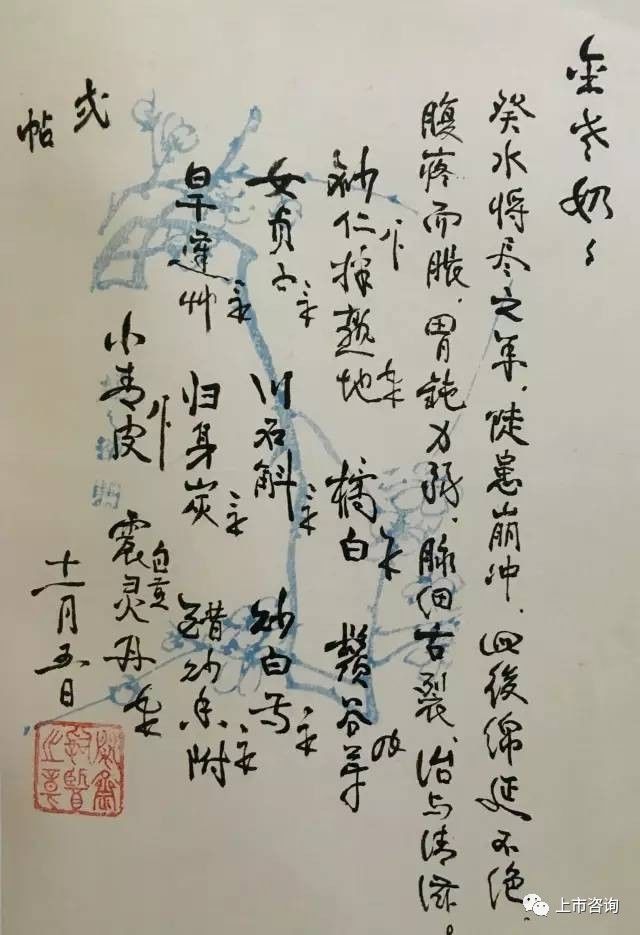 精美的花笺,娟秀的字迹,配以实用的处方,药材间的留白,篆刻的提示语,虽无意安排,却成了章法多变的书法小品,着实耐看。