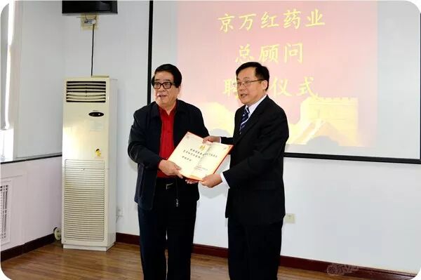 老药师章臣桂详细询问了企业独家产品益肾液的配方情况,并重点从技术环节上对企业药酒产品研制和生产提出了珍贵意见和改进方向。研讨会举办了京万红药业总顾问聘任仪式,由徐道情总经理向国医大师张大宁颁发了企业总顾问聘任证书,张大宁向企业赠送了亲自编著的《景行庐医话》等中医学理论专著。