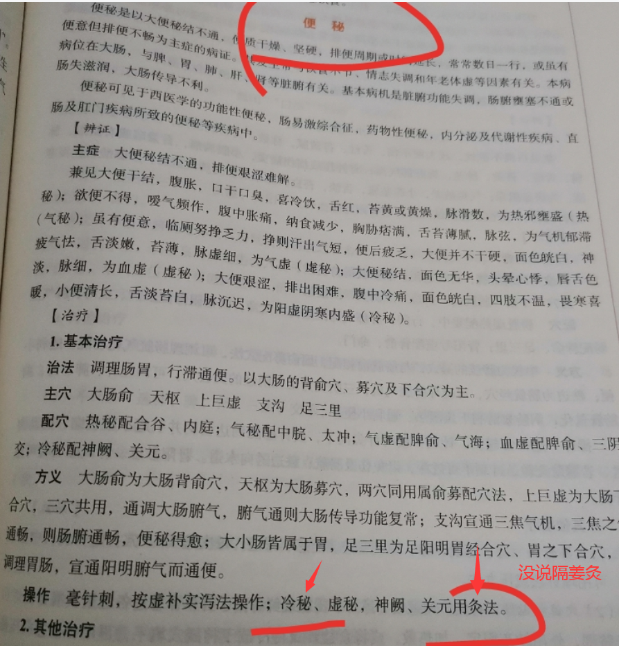 本题的争议点在于选不选休息痢和寒秘,在《针灸学》隔姜灸中没找到,但在痢疾病治法中找到准确描述,同理《针灸学》痢疾病下面就是便秘病,描述是灸法不是隔姜灸,描述和痢疾不一致所以按照教材,我们青医说四个老师也感觉这题存在一定争议性,初步选定答案AB,但具体还是要依据国家给的答案看选不选C。