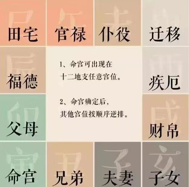 人事宫位作为描述人与事物发展的宫位,它是会移动的,父母宫有可能在寅宫,有可能在巳宫,人事宫位之所以会变化:就好比一个人有可能去美国旅游也有可能去上海上班一样。但是以命宫为起点顺时针排列父母宫、福德宫、田宅宫等等,十二人事宫位之间的位置是相互固定的。