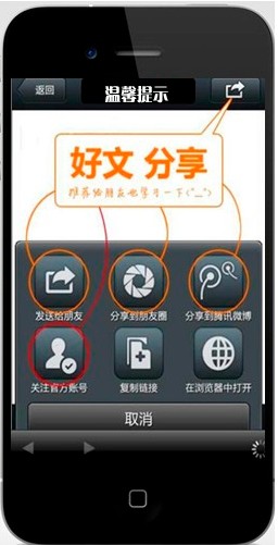 朋友圈分享:微信内容页右上角的图标 选择“分享到朋友圈”即可,轻松一点,受益一生!
