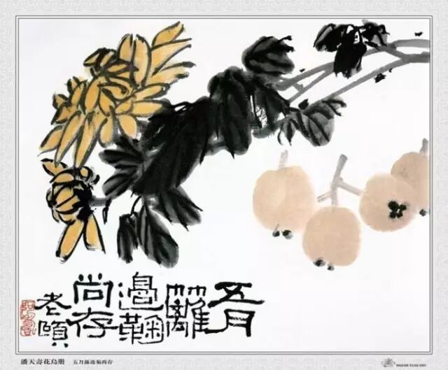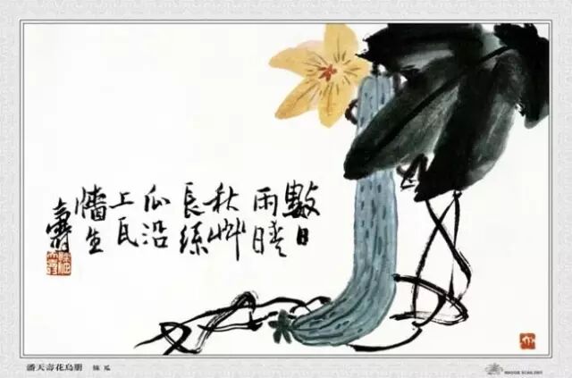 潘天寿的画,开创了画史上的新风。他爱八大,又非八大,而潘天寿(寿者)画的风格与八大对照,八大取圆,寿者取方;八大出奇,寿者雄胜;八大含蓄,寿者豪放;八大简朴幽深,寿者繁密疏旷;八大收敛于内,寿者势张于外。八大因时避违款穷,寿者款识情意则多。石涛善题跋,取其自然舒畅,而寿者则着意肃严,宣染奇胜。两者(与八大)都是气势磅礴,魄力惊人。都是言之不尽,意气无穷。潘先生自谦刻印称“不雕”,其实是大雕,特雕,使之典型,达到艺术的最高境界,形而上的刻意之深豪放不为笔使,着墨(用色)不为墨用。探传统,破古人,已达到“无法之法为到法”矣。