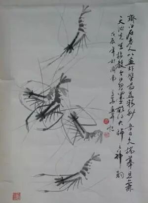 齐白石的虾由生活中的六段成了画纸上的五段,这包含了一个极重要的艺术原理:一定是五段的虾,在比例上在画面上摆出来最合理,最好看,最美。终于,五段由六段中飞腾了起来。 这个飞腾,太重要了,非常伟大,因为五段是艺术的真实,是一种超越,是一种非常,是比真实还美丽的璀璨,这就是齐白石变法的深刻。我揣摩,齐先生一定试验过,六段不成,四段也不成,非五段不成;于是,五段便成了艺术的必然,也衍生了一个有普遍艺术规律的美学原理。