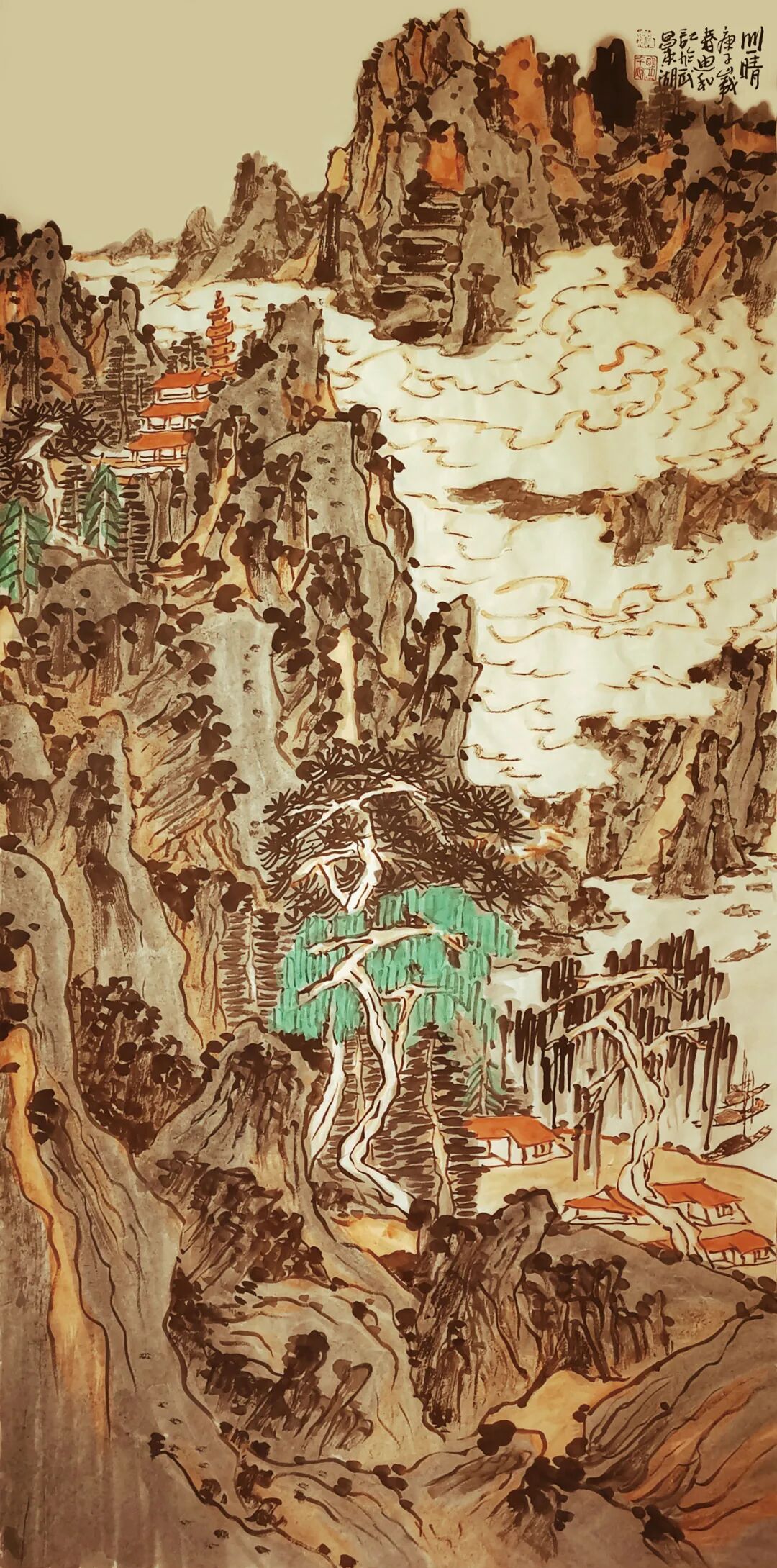 世间无常事 山静水随波 136cmx68cm