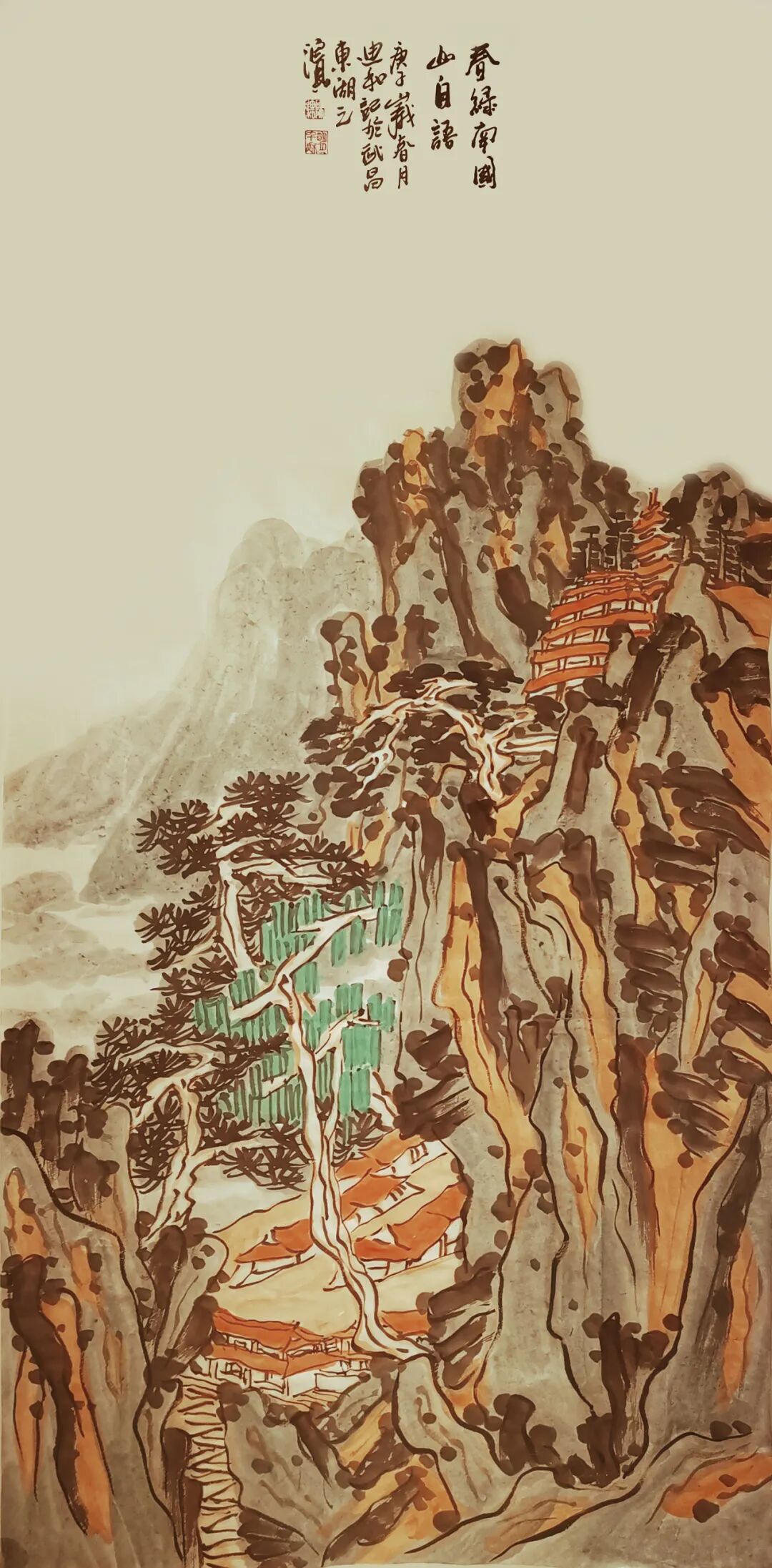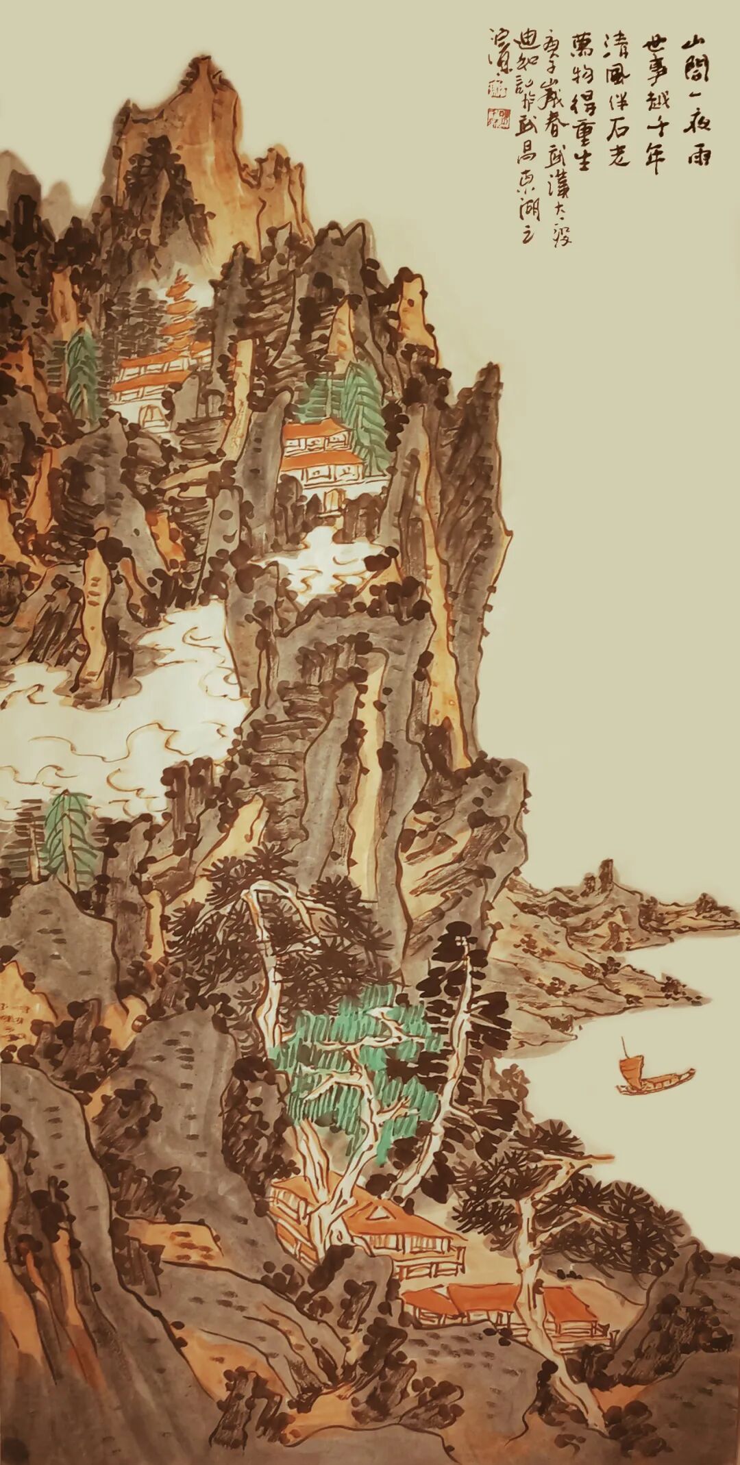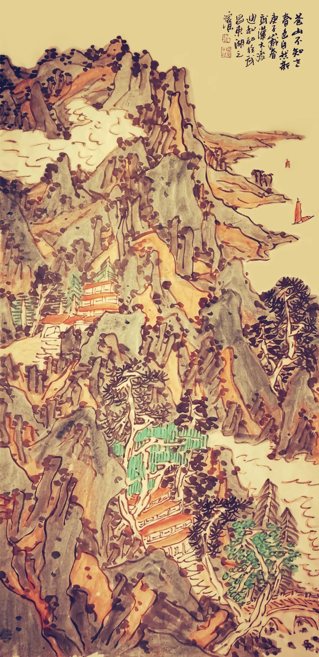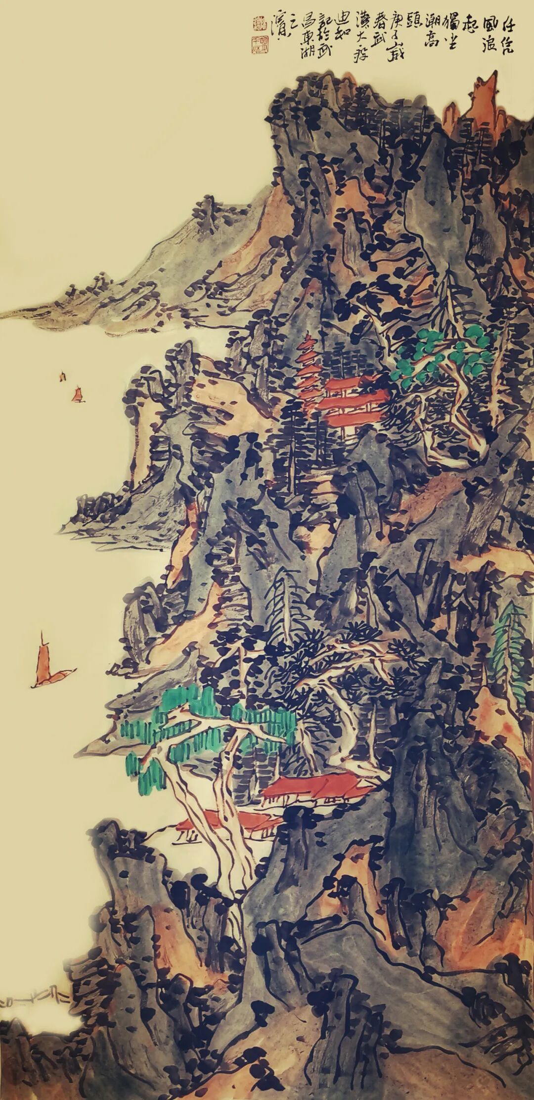 孤帆一叶半仞山 松青石绿春又还 136cmx68cm