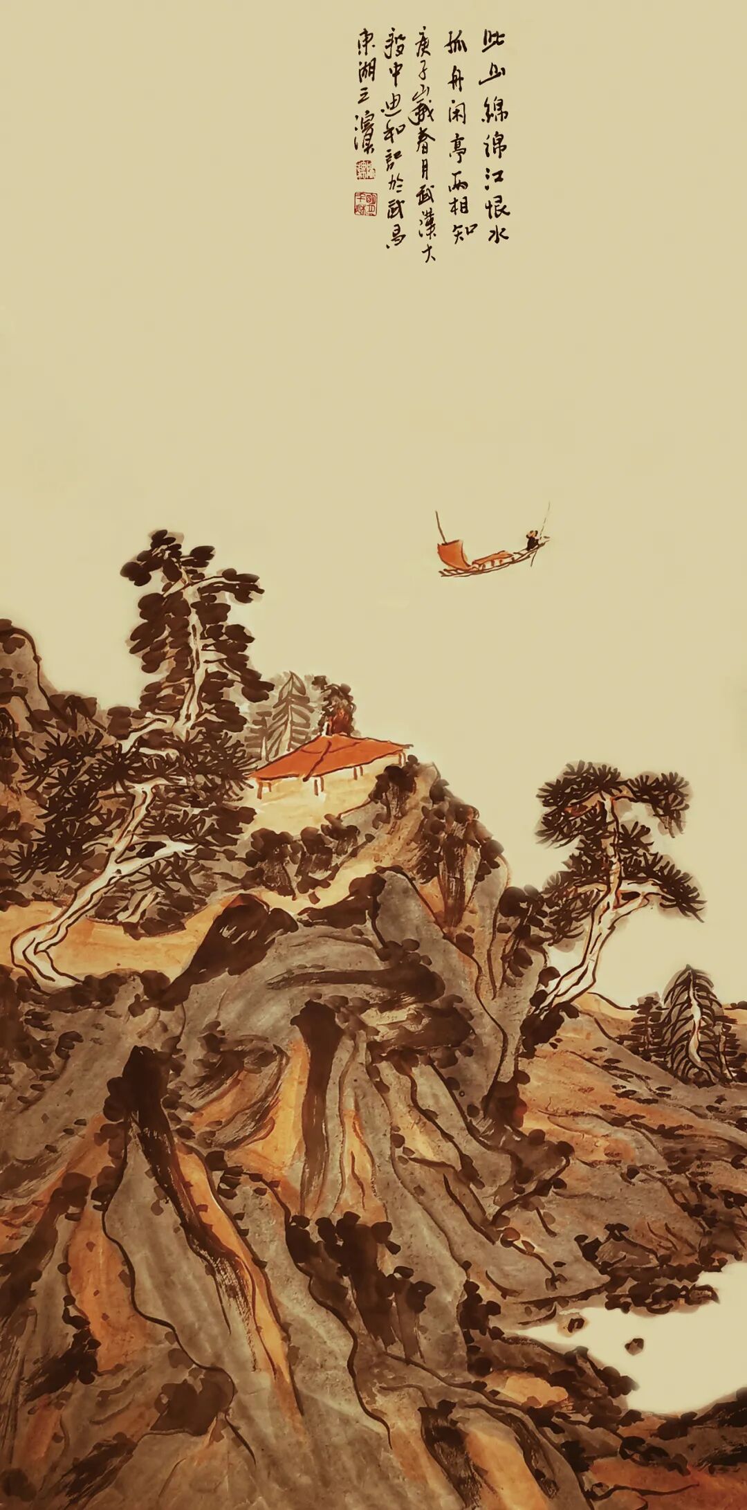 此山绵绵江恨水 孤舟闲亭两相知 136cmx68cm