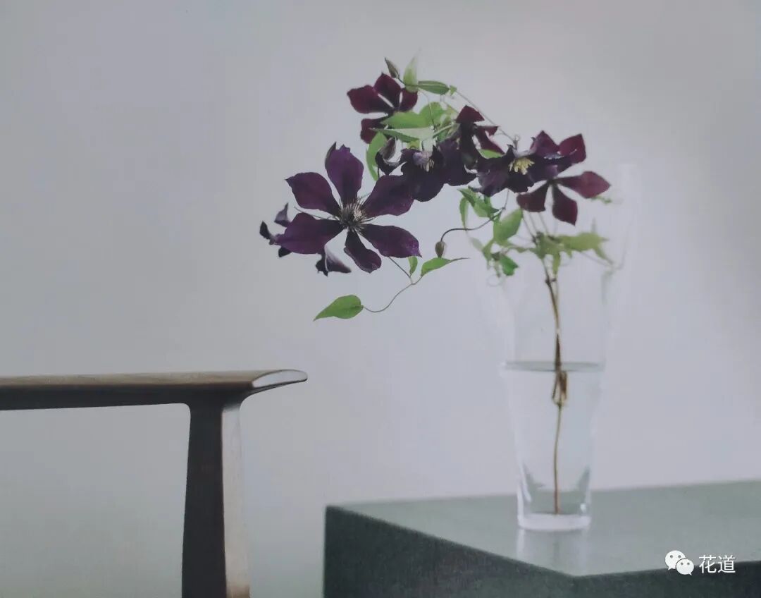 使用的花器极为简约,因此花也要朴素自然,不需要过度修饰。
