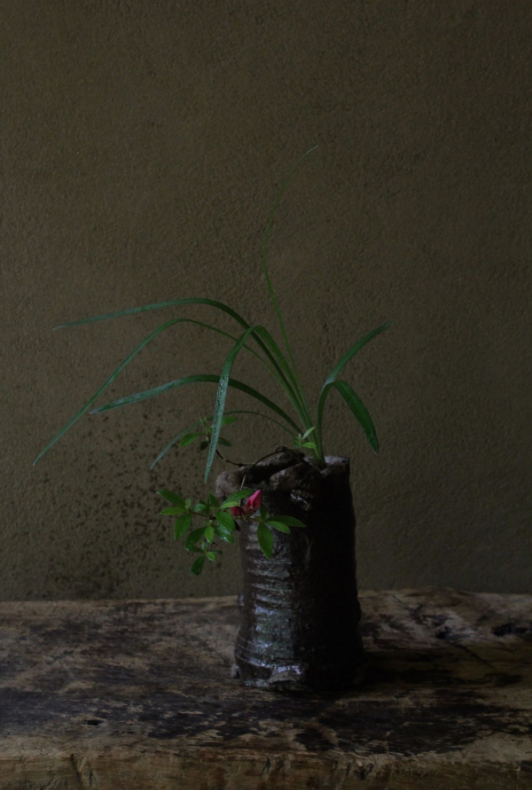 花与器之间,也是如此。感受土和火的朴素,在茶色器皿上插上鲜艳的叶子,在华丽图案的瓷器上插上有力的树枝等。若使用2种以上的花,花与花之间也需要有对比。插花的地方通常装饰着书法和绘画,将各种对比叠加,以最大限度地发挥出一朵花的力量,并据此设计整个空间,抱有这样想法的,大概也只有日本。