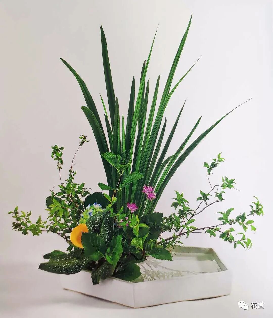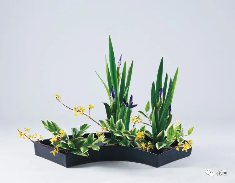 燕子花和花菖蒲,是传统花道中常用的花材。燕子花叶片翠绿,花朵颜色鲜艳,被认为是阴柔之美的象征;花菖蒲品种繁多,花色各异,比燕子花要高很多,常被认为是阳刚之美的象征。