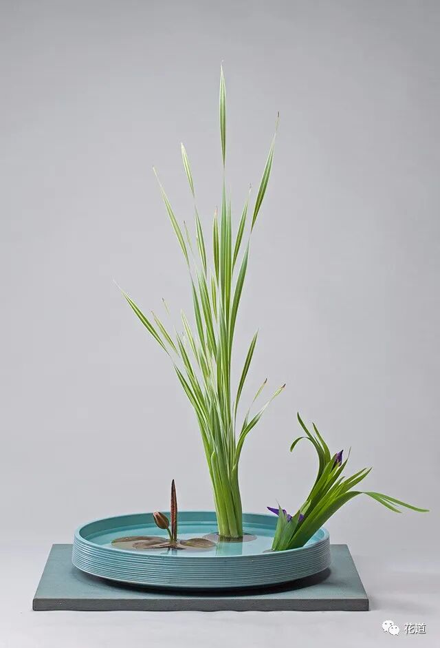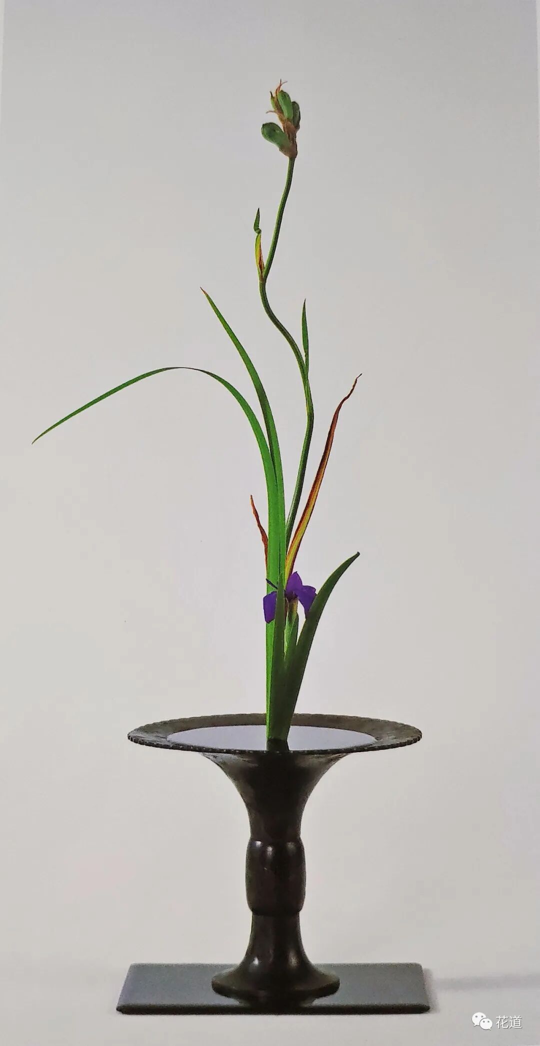 随着季节变化,我们会发现,燕子花的姿态也会随之发生细微的变化。这种细微的变化,可以通过上面的作品中觉察。在插花的时候,季节的表现不同,主要是通过花与叶的长短表现。