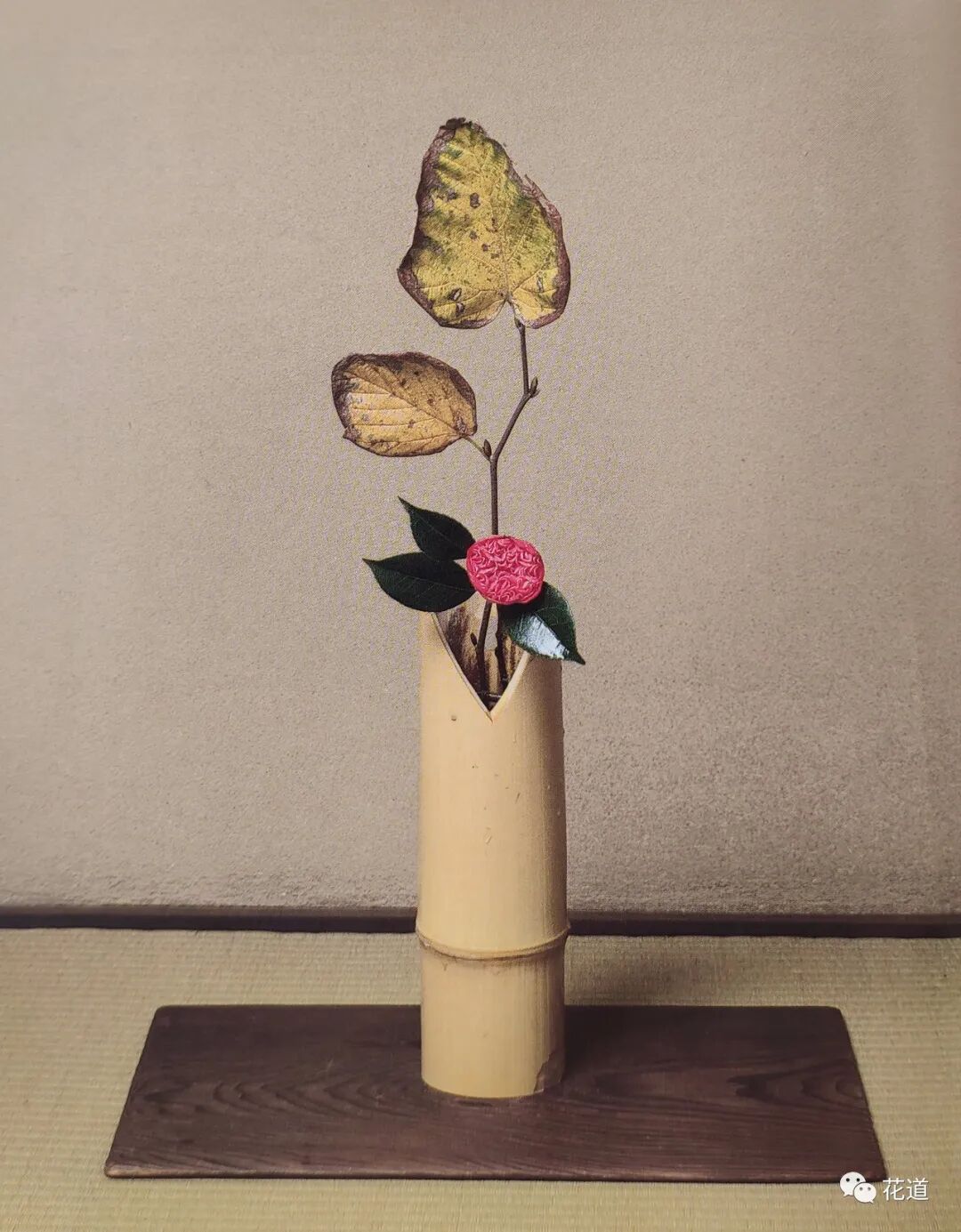 当然,竹花筒也并不只是适合于茶室或茶会。只要环境合适,即使是现代化的公寓,也可选用竹花筒插花。