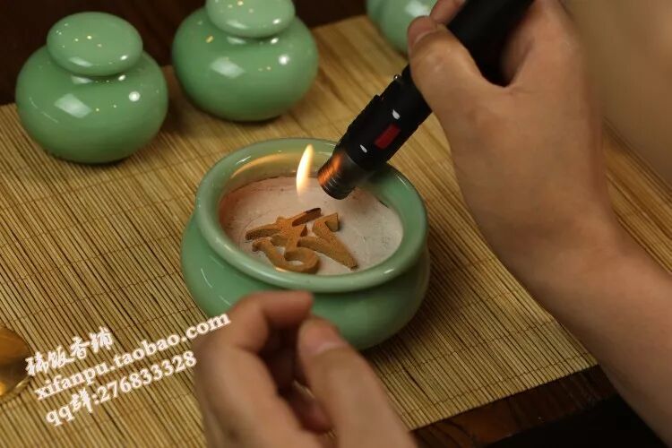 3、燃籇。在图形或字样的一端点燃香篆,使其从一端开始燃烧。