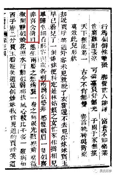 列藏本的描写出人意料,这个地方则是“两湾似蹙非蹙罥烟眉,一双似泣非泣含露目”,这个说法,在现在出版物基本得到认可而逐渐盛行。2006年,卞亦文高价购买的一套十回抄本中,又出花样,趣味横生,对于林黛玉的眉目描写竟然是“两湾似蹙非蹙罥烟眉,一双似飘非飘含露目”。庚辰本此处则是“两湾半蹙鹅眉,一对多情杏眼”,与其他版本均不同。舒序本此处则是“眉湾似蹙而非蹙,目彩欲动而仍留”,也是独具一格。通过对比这些抄本中对于林黛玉眉目的千奇百怪的不同描写,可以清楚发现,在早期传抄的某个环节中存在抄漏,或者底本出现墨污虫蛀的问题。由甲戌本用朱笔留出的空字(后被填补)来看,更可能是后一种情况。而南图本、戚序本、蒙府本等这几个本子或其母本,则直接抹去痕迹,以 “一双俊目”带过,但批语还保留了“奇目妙目,奇想妙想”。很显然此处原文还有其他内容,“一双俊目”怎么也称不上是“奇目妙目”。最后可以告诉大家一个真相,这句话原本的说法是出乎常人意料的。原句应为“两湾似蹙非蹙罥烟眉,一双似凄非凄含露目”,这是《吴氏石头记增删试评本》告诉的答案,列藏本与之最接近。《吴氏石头记增删试评本》带给人们的冲击是颠覆性的,结论是终极性的。所有的纷争,在《吴氏石头记增删试评本》面前立即哑火。红楼观止,仔细品味,还没有比这个说法更完美的!新观点、新视角,同一部红楼梦,不一样的文章。欢迎关注“薛宝钗红学会红学研究红学家红学专家学者”微信 ,带给您更多精彩解读!