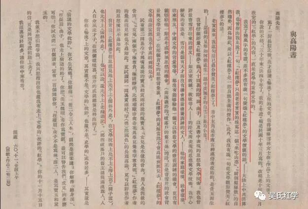 在《与高阳书》中,胡适称自己写了“几万字的考证,差不多没有一句赞颂《红楼梦》文学价值的话”,并解释就算大陆对其思想批判,“也会指出我只说了一句:‘《红楼梦》只是老老实实的描写这一个坐吃山空、树倒猢狲散的自然趋势,因为如此,所以《红楼梦》是一部自然主义的杰作。’”这里胡适其实是强调了他青年时代创建“新红学”的目的,也只是为了对抗老红学的索隐,他自始至终“没有一句从文学观点赞美《红楼梦》的话。”在《红楼梦》的文学价值上,胡适也跟其它小说做了对比。他说:“在那一个浅陋而人人自命风流才士的背景里,《红楼梦》的见解与文学技术当然都不会高明到那儿去。”“我向来感觉,《红楼梦》比不上《儒林外史》;在文学技术上,《红楼梦》比不上《海上花》,也比不上《老残游记》。”至于胡适费了九牛二虎之力考证出的那个子虚乌有的曹雪芹,在他心中也不是大神。他说:“曹雪芹是个天才而没有机会得着休养训练的文人——他的家庭环境、社会环境、往来朋友、中国文学背景等等,都没有能够给他一个可以得着文学休养训练的机会,更没有能够给他一点思考或发展思想的机会。(前面讥评的‘破落户的旧王孙’的诗,正是曹雪芹的社会背景与文学背景)在那个贫乏的思想背景里,《红楼梦》的见解当然不会高明到那儿去,《红楼梦》的文学造诣当然不会高明到那儿去……”在《答苏雪林书》中,胡适也大抵是一样的思想和态度,对《红楼梦》、对曹雪芹,他已经不再是开创新红学时代那样趋之若鹜了。在这里我不做展开论述,有兴趣的网友可以查阅《答苏雪林书》,本文的两封胡适书信都是来自《胡适<红楼梦>研究论述全编》,页码有拼接,但无文字上的任何变动。