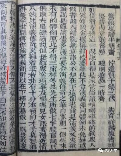 这样,我们就很清楚地得出结论,《红楼梦》至少在雍正甲寅仲夏之前就已经传世了!最初有人提出《何必西厢》中提到红楼梦,而序是雍正年间的,说明《红楼梦》至少成书于雍正年间。面对这个观点,有的红学家拿出民国出版过两次《何必西厢》强调说:这个书就是民国伪书!反对者就没多少声音了。后来又有人指出:《何必西厢》存在清朝刻本,最早都有发现是嘉庆五年刻本了。这些红学家只好再次出来改口:书是嘉庆的,序是伪序!请问作伪序有何动机?一些红学家认为是故意写得年代久远便于装得有历史来头。我们不禁要问,如果是冒充年代久远,那何必用雍正朝呢,用顺治康熙这些超过百年的多好,用崇祯朝也不过分,因为故事是明朝才子佳人故事,对本朝没有影响,只冒充早几十年有多大意义呢?其实这些争争吵吵,都是纸上谈兵,无论是支持者还是反对者都没有翻看善本内容,都是手持一本今人或者民国旧书互喷口水,自然不知善本的饱满信息:这部书的序采用的不是和正文一样的活字,而是雕版,保留了写序人的手稿原貌,更不知道还有这惊人的钤章。如果连作者的钤章都不相信,那么在中国的字典里,就要删除“印证”一词了!更痛苦的还有一个人,那就是文康。文康整理和刊刻了《正法眼藏五十三参》,他在自序中说得很清楚,他是如何得到这本书,如何自己又添补校对才重新刊刻,并命名为《儿女英雄传》。而今天的学者却楞把这本书的作者安在了他头上。为什么非要把《儿女英雄传》的作者安在文康头上呢?原来这部书的“原序”也是让一些红学家不能接受!只有把书的作者安在文康头上才能合理得出结论:序是文康的“伪序”。为什么一些红学家对这本书的序那么纠结?因为序中提到了《红楼梦》。请看序文: