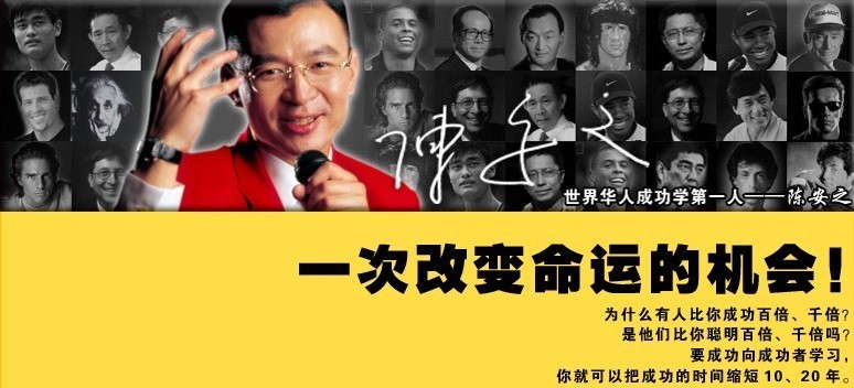 我是陈安之,很高兴能与你分享这个难得的消息,社会一直在淘汰有学历的人,但不会淘汰有学习力愿意改变的人,要想改变口袋,先要改变脑袋,改变是永恒不变的主题。你的未来将达到怎样的高度和境界,取决于你耐心往下看的5分钟…当您很认真的读完这篇文章后,有可能您个人、家庭、企业的命运从此改变。