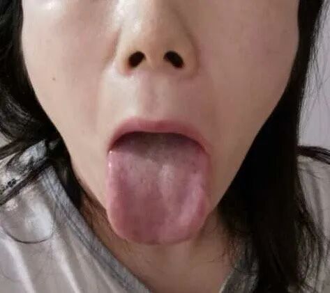 X女士,30岁,平素胃弱,常因饮食不慎诱发胃痛,并常出现偏头痛经休息后可缓解。2020年4月8日晚7时线上请诊,诉自当日下午3-4点开始,在下班回家的路上出现头痛,至5时30分加重,回家休息后没有缓解,疼痛加重。现头痛如炸(原话诉“头要炸了一样”),疼痛部位以前额延伸到颞部为主,巅顶及后头部亦有痛感,伴恶心欲呕,下肢冷感。舌胖色淡苔薄白(见图1),脸色白而血色不佳,两侧上睑浮肿貌。