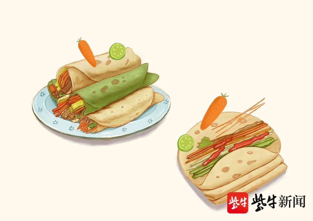 而所谓“咬春”,也就是吃春饼、春卷等卷着新鲜蔬菜的面食。早在晋朝,人们就有吃“春盘”的习俗,将鲜嫩的葱、蒜、韭、蓼、蒿、芥等蔬菜放在饼上吃。这些菜大多属于荤菜,味辛,有生发之效,和春天阳气滋长的时令非常符合。后来,这种习俗慢慢演进,就成了今天的春饼、春卷,不过包着的内容早已不局限于这些蔬菜,豆芽、荠菜、胡萝卜都是常见的馅料。不变的是,春季很多蔬菜都非常新鲜,多吃一些对身体的好处是很大的。如果不会做饼和面皮,或者觉得麻烦,也可以把这些菜切成丝杂炒。
