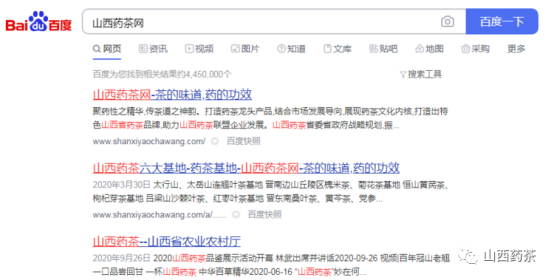 2020年6月,“山西药茶网”被列入百度搜索第一位。