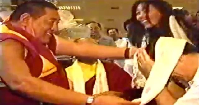 法王如意宝在五明佛学院数万僧众参加的持明法会中,圣尊一伸手就取到一颗发光的舍利子